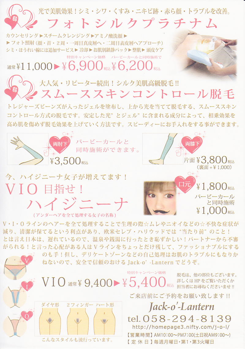ジャック・オ・ランタンは、岐阜市北島にある美のトータルサポートサロン。