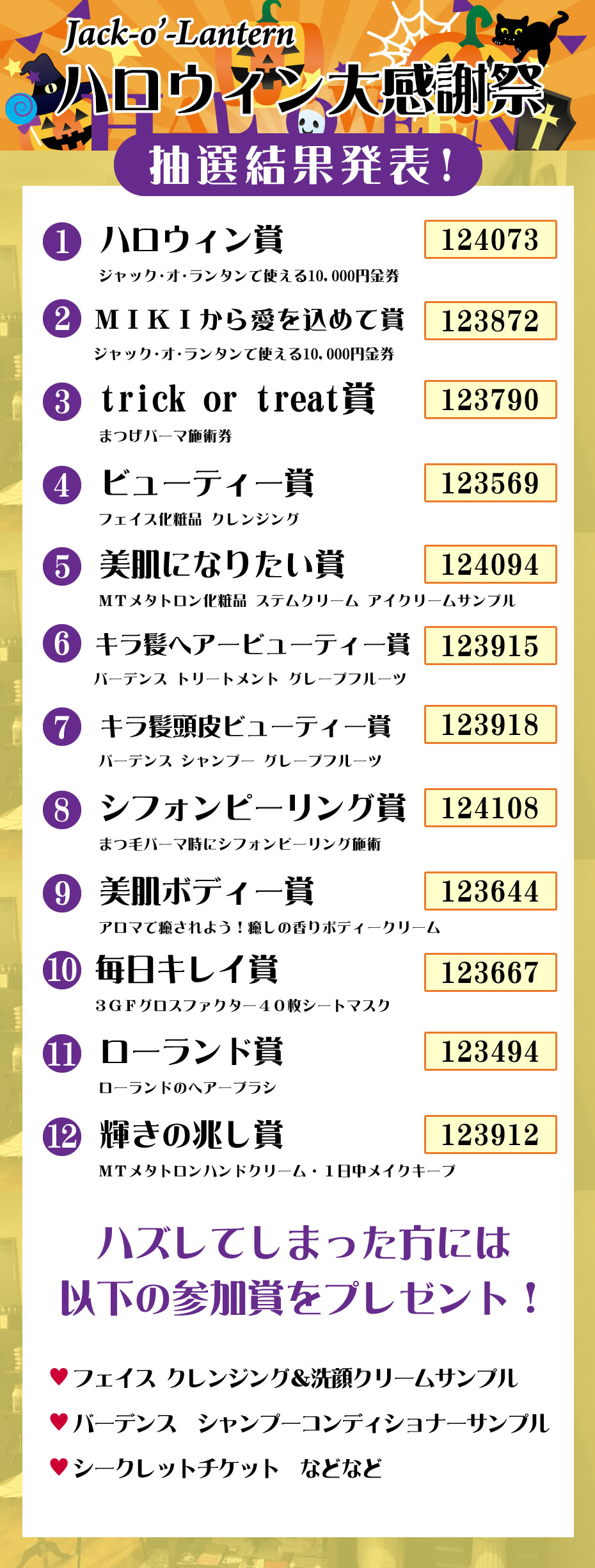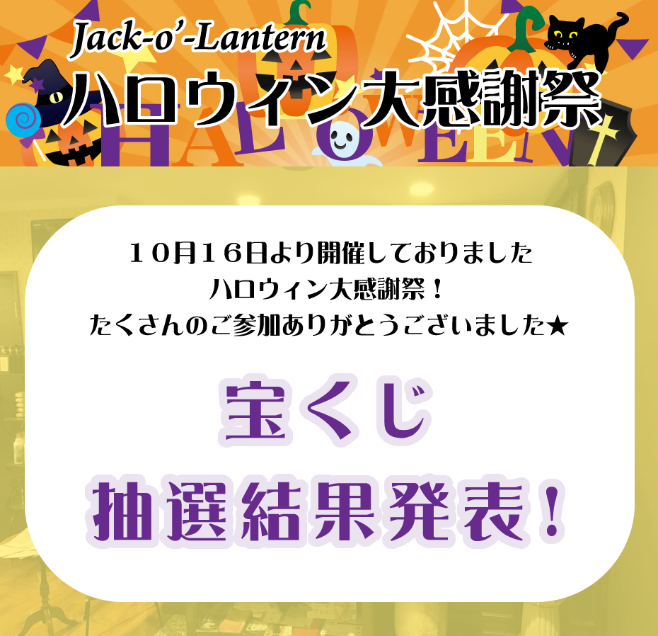 ハロウィン大感謝祭 宝くじ 抽選結果発表!