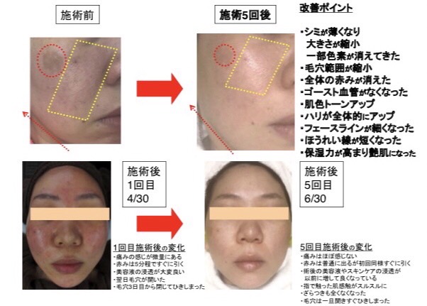 一度で完全にきれいになるシミもあれば、何回か繰り返すことにより薄くなるシミもあります。お肌本来が持っている再生機能を高めましょう!